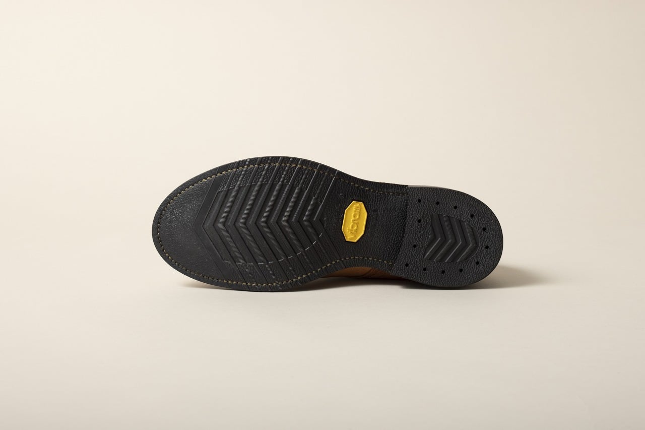 堅牢なグッドイヤーウェルテッド製法にアウトソールにはビブラムソールを使用。