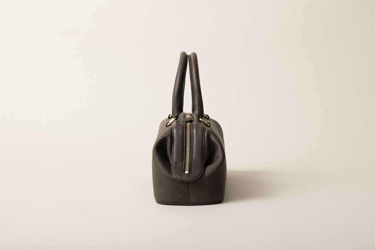 テーブルや椅子などに置いた際、美しいシルエットが崩れないように底面にスタッズを装着、ハンドルを持ちやすい長さに調整しています。