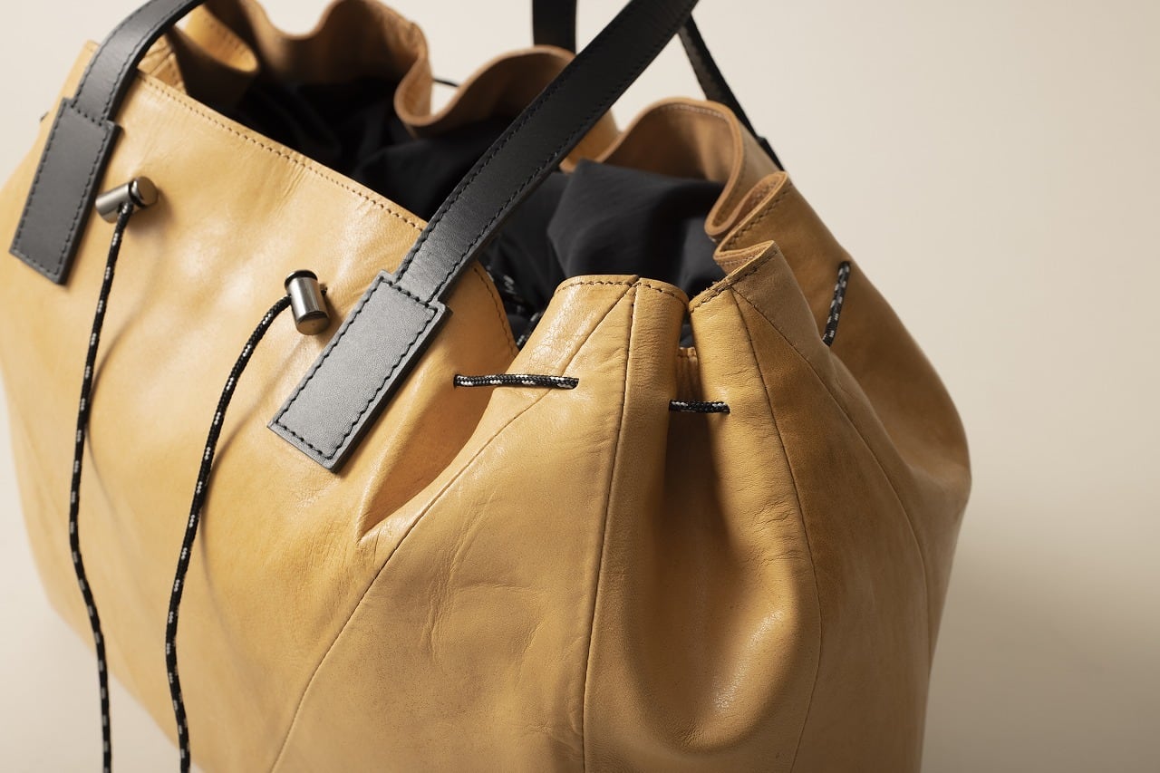 折り紙の「舟」の形を表現したラージサイズのトートバッグをレザー仕様にアレンジ。