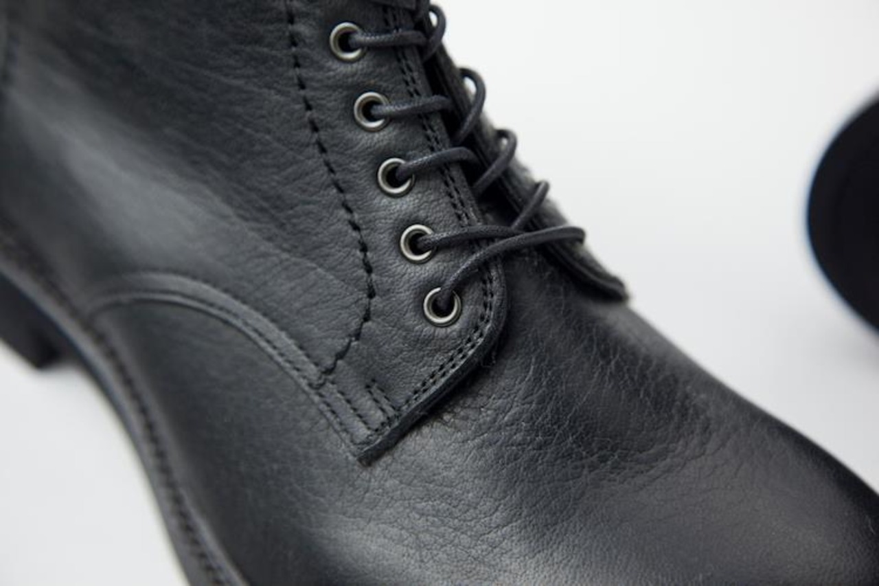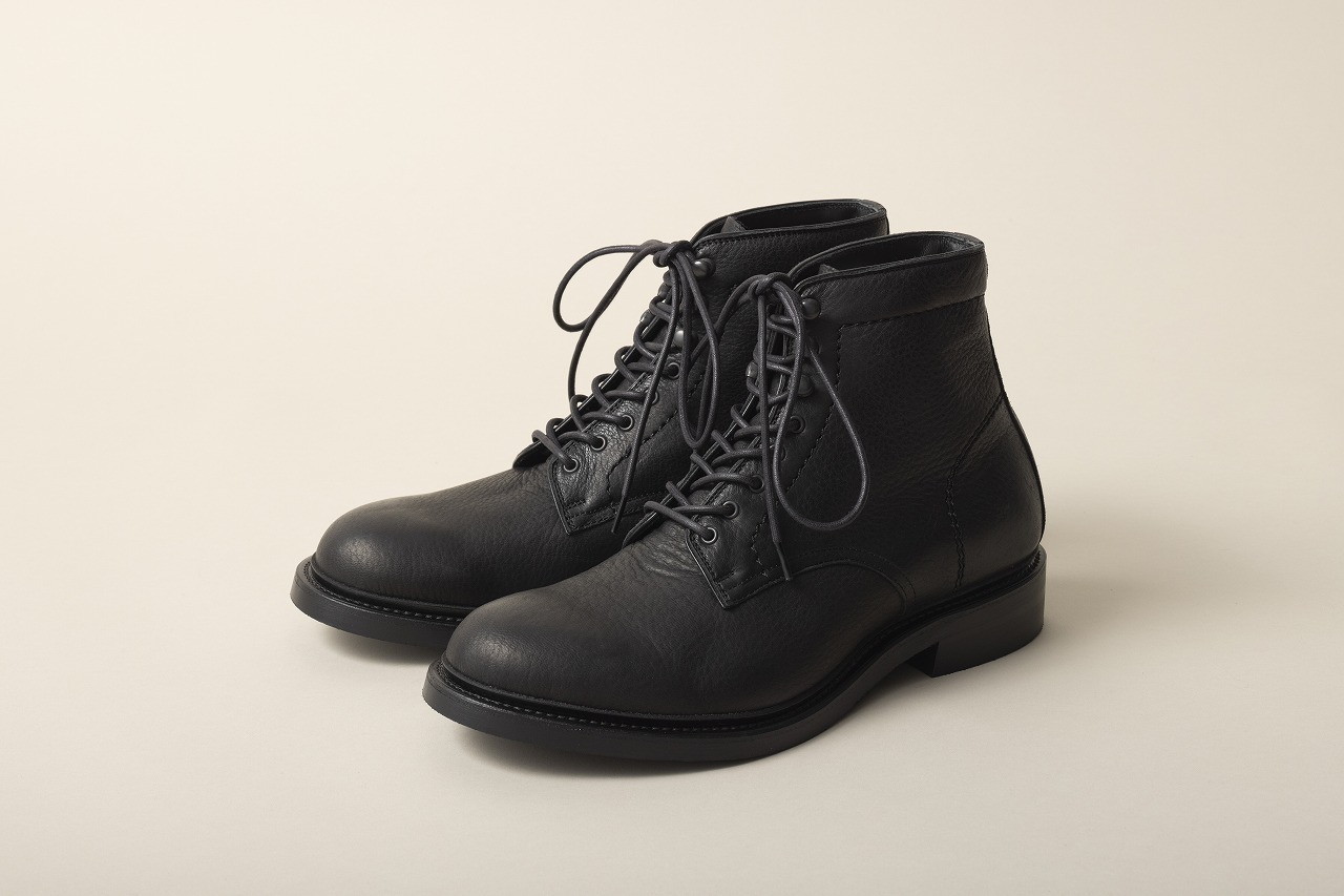 革のレースアップブーツは靴ずれなどを起こしやすい傾向にありますが、鹿革特有のしなやかさと柔らかさがその問題を解消します。また、特有のムラ感と柔らかい風合いがとても魅力的に映えます。手入れをすることで深みや艶のある黒色へと経年変化を楽しむことができます。